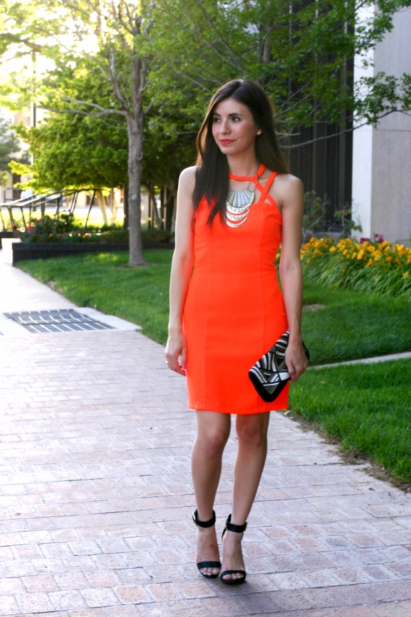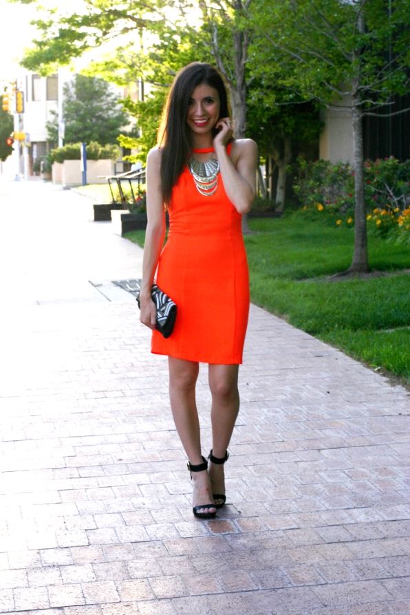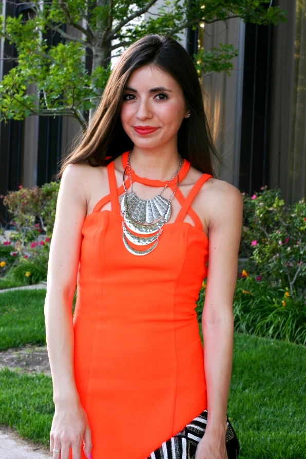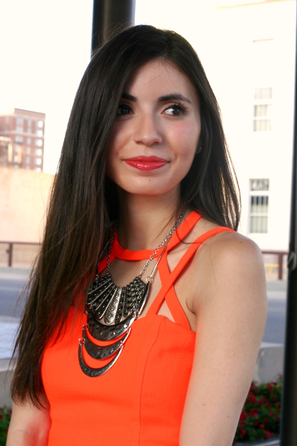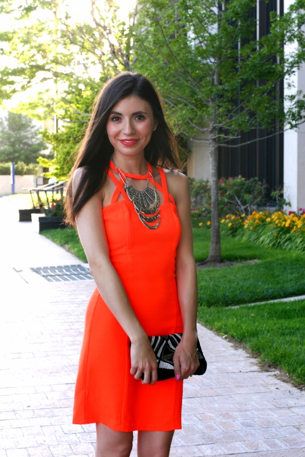 Oh wow what a gorgeous outfit – the cut out of that dress is so cool and that color is super flattering! I think I'll take a page from your accessorizing book and stop by Charlotte Russe for necklaces. Yours is amazing!