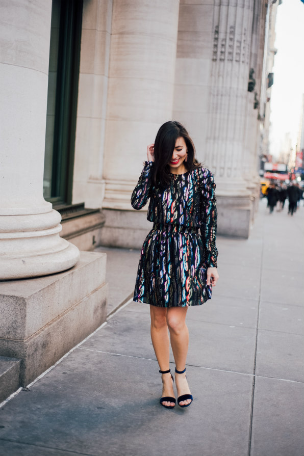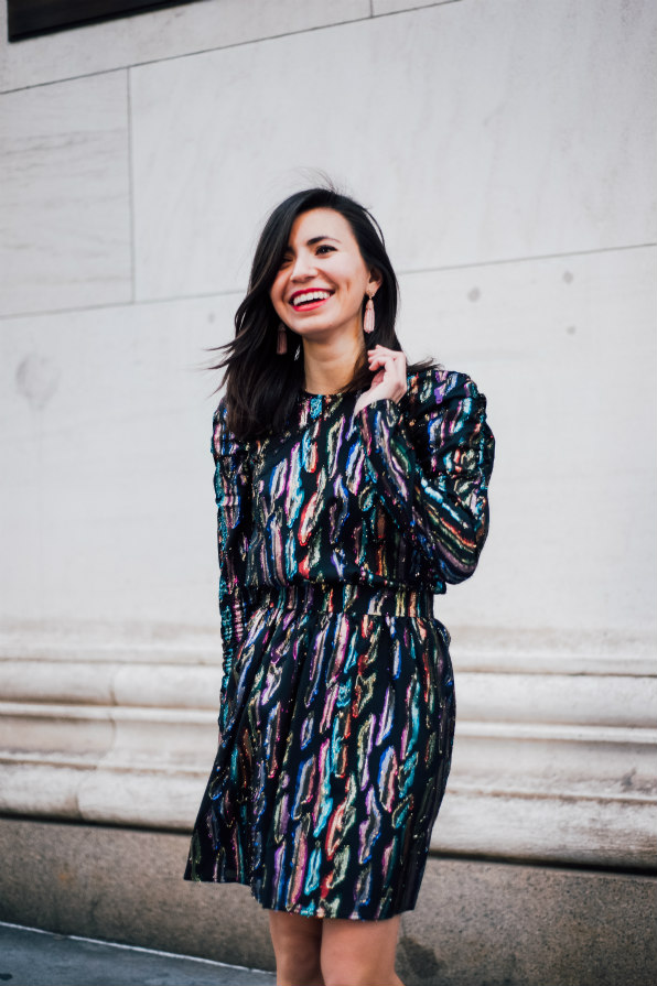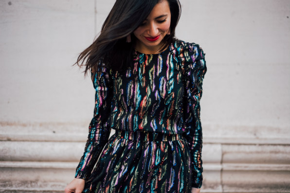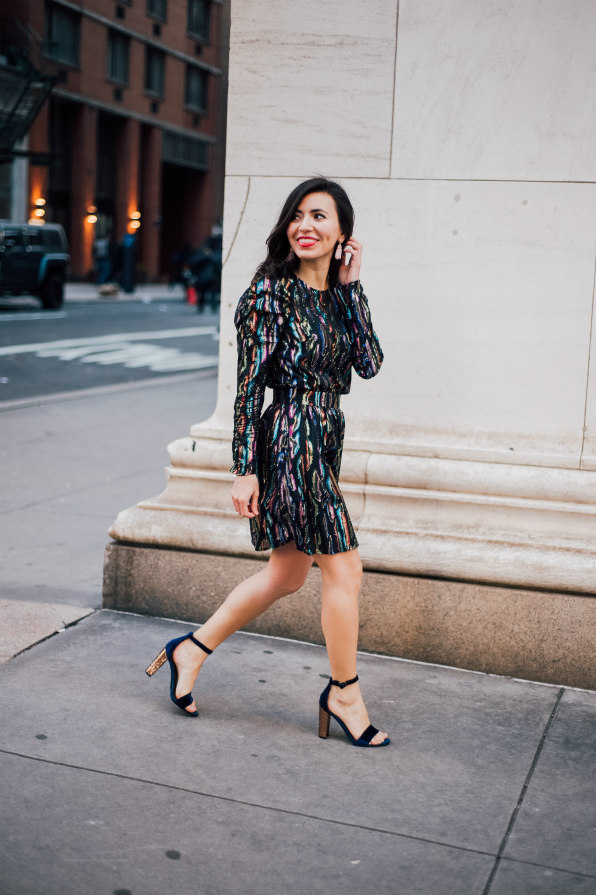 & Other Stories Disco Dress | Marc Fisher Glitter Block-Heels |