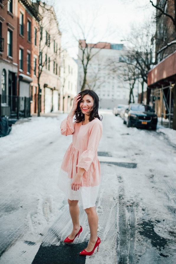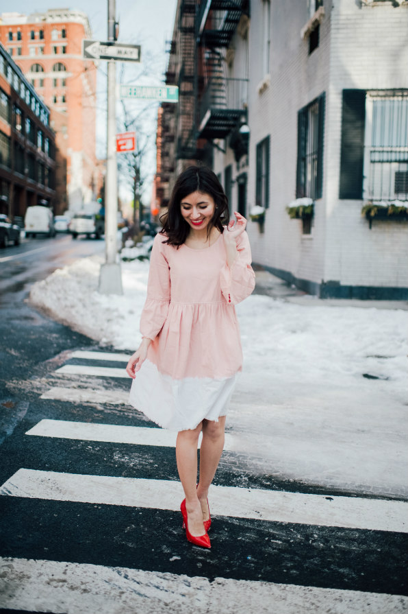 I can always be found in dresses or skirts, and tend to gravitate towards them any chance that I get! So…Valentine’s Day was a no brainer for me when it came to choosing outfits. I love the simplicity of both looks with small pops of ‘fun’. I’m all about adding color to a look whenever possible and I definitely try to incorporate that in the details any chance that I get!